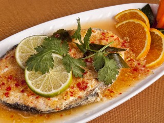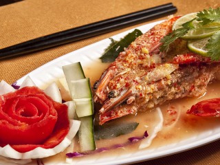 Pla Rad Prig** – Deep fried fish, topped with spicy and sweet chilli