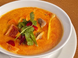 Duck Curry** – Stir fry chicken with cashew nut, onion, spring onion, carrot, mushroom, red and green pepper